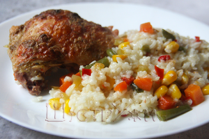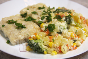 Вкусная и нарядная красная рыбка с гарниром в духовке.