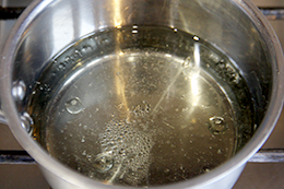 1. В ковшик налейте воду и растительное масло, доведите до кипения. печенье галеты, шаг 1, как приготовить фото