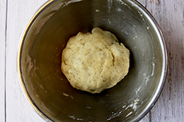 3. Вылейте горячее масло с водой в муку, хорошо перемешайте. Сформируйте из теста шар, прикройте, оставьте на 15 минут. рецепт галет с травами, шаг 3, как приготовить фото