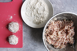 | 4. Сформируйте из фарша с рисом шарики, обваляйте в муке. Обжарьте на растительном масле до золотистой корочки, переверните, обжарьте с другой стороны. | ![]() |
