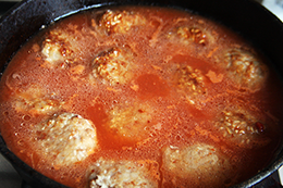 | 5. Смешайте томатную пасту с водой, залейте ёжики. Готовьте под крышкой на маленьком огне 25 — 30 минут. | ![]() |