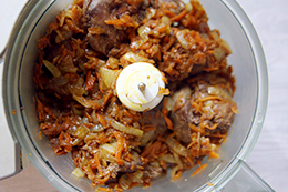 | 3. Немного остудите печень с луком и морковью, измельчите в блендере или пропустите через мясорубку. | ![]() |