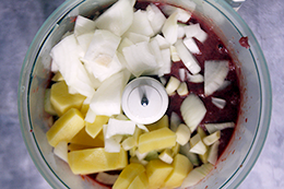 2. Измельчите печень в блендере или пропустите через мясорубку. Измельчите овощи. как приготовить печёночные оладьи, шаг 2, как приготовить фото