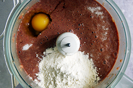 3. Смешайте печень и овощи, добавьте яйцо и муку. Посолите, хорошо перемешайте. как приготовить оладьи из печенки, шаг 3