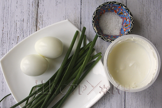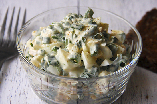 1. Яичный салат с зелёным луком.